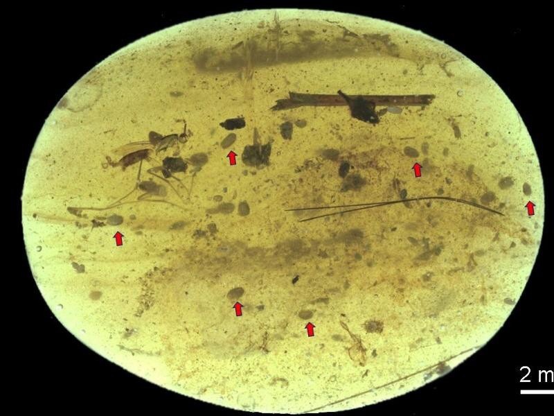 Ein internationales Team von Paläontologen entdeckte sie in Bernstein gegossen im Inneren eines weiblichen Muschelkrebses aus Myanmar, wie Forscher unter anderem der Ludwig-Maximilians-Universität (LMU) München im Fachmagazin «Proceedings B» berichten. Das Krustentier hatte sich offenbar gerade gepaart, ehe es im Baumharz eingeschlossen wurde.